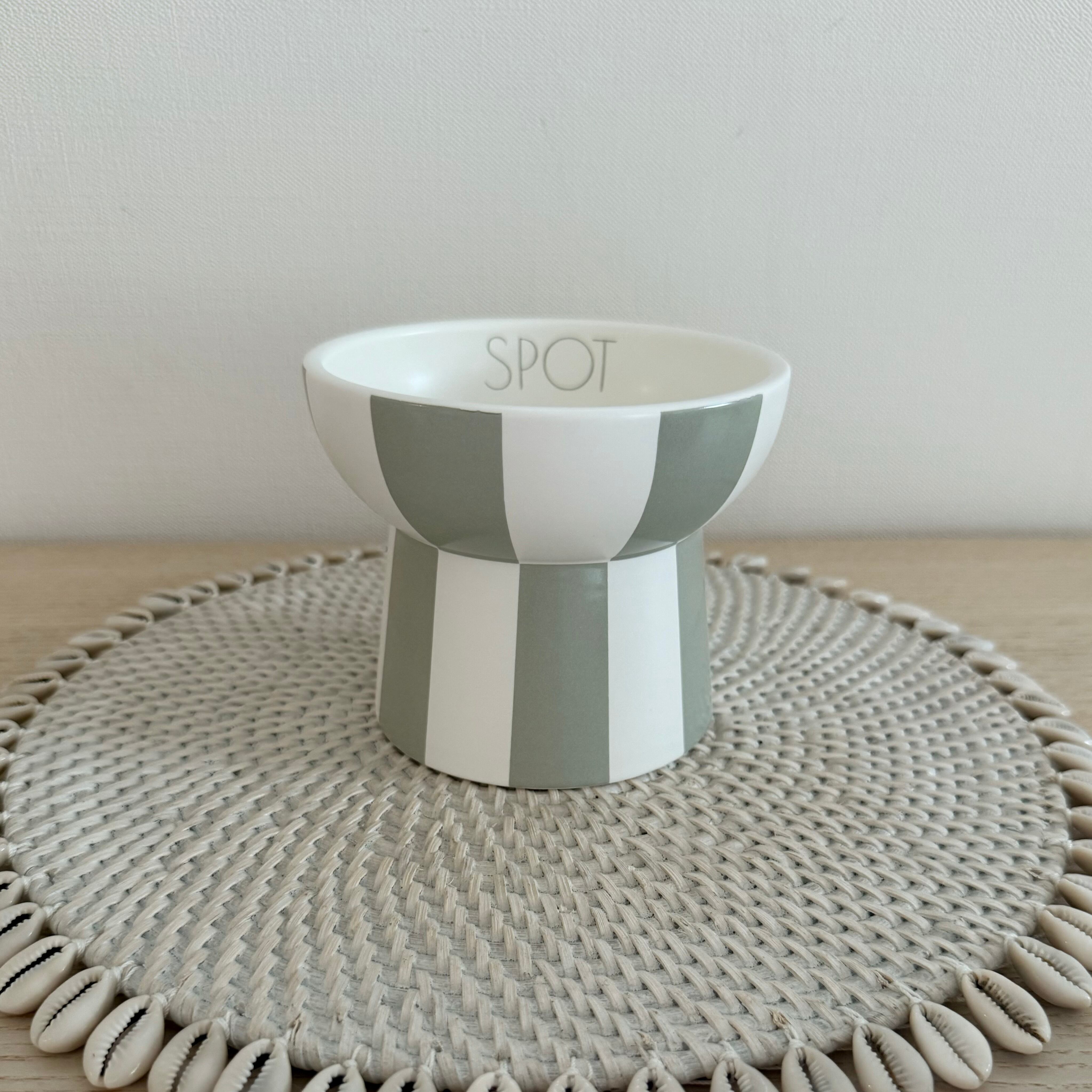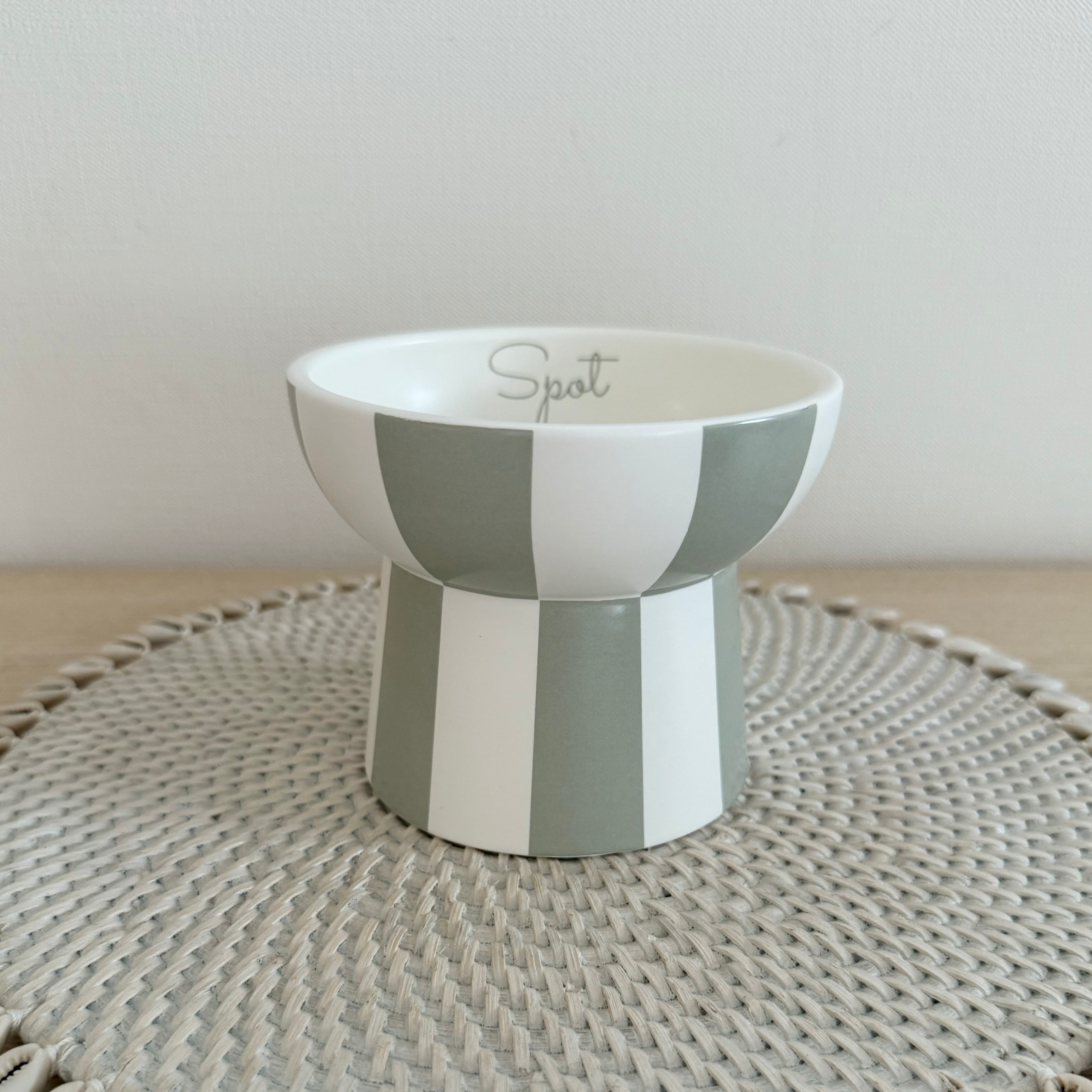 名入りペットフードボウルMストライプ【アッシュグリーン】
