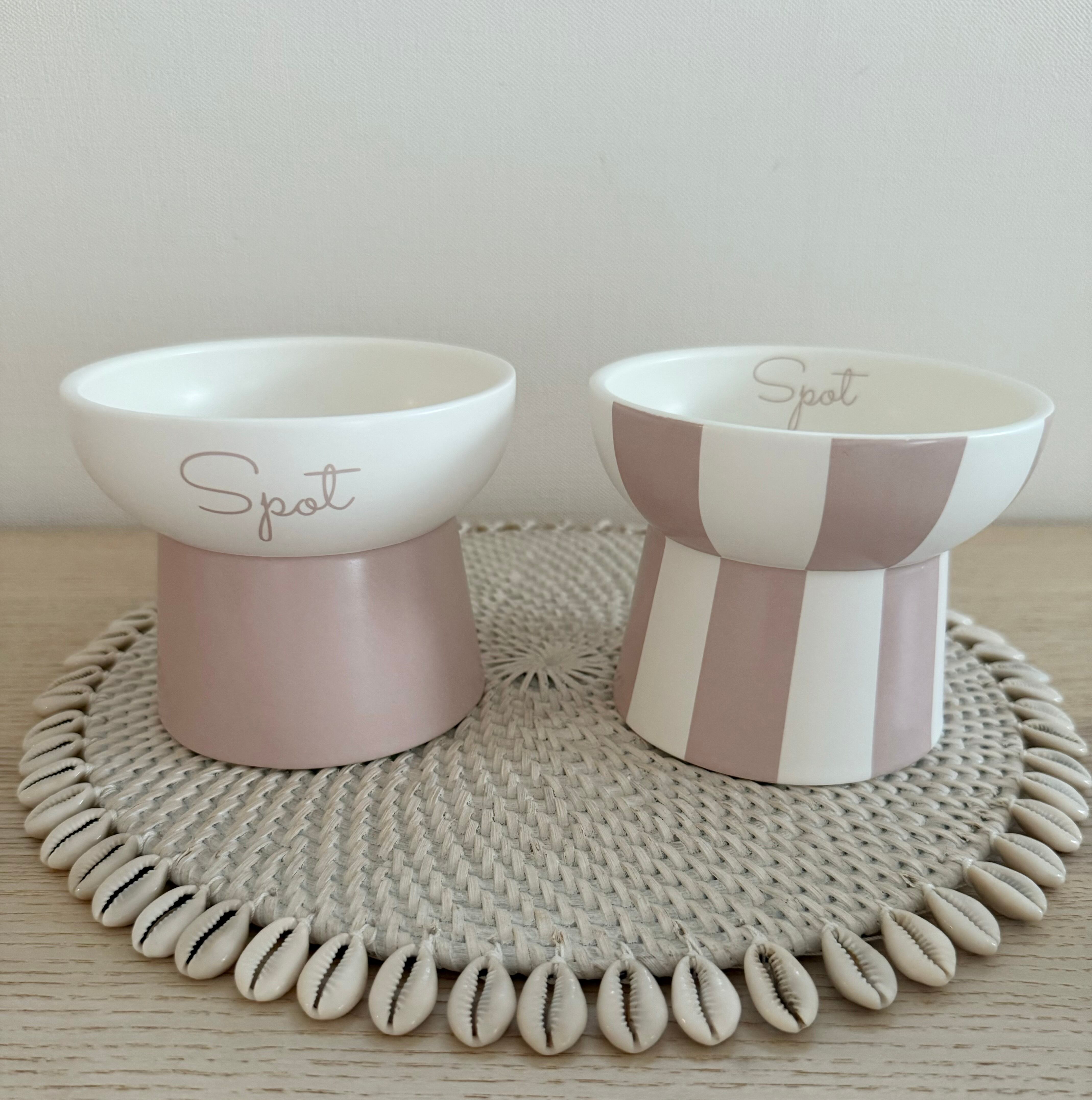 名入りペットフードボウルMストライプ【アッシュピンク】
